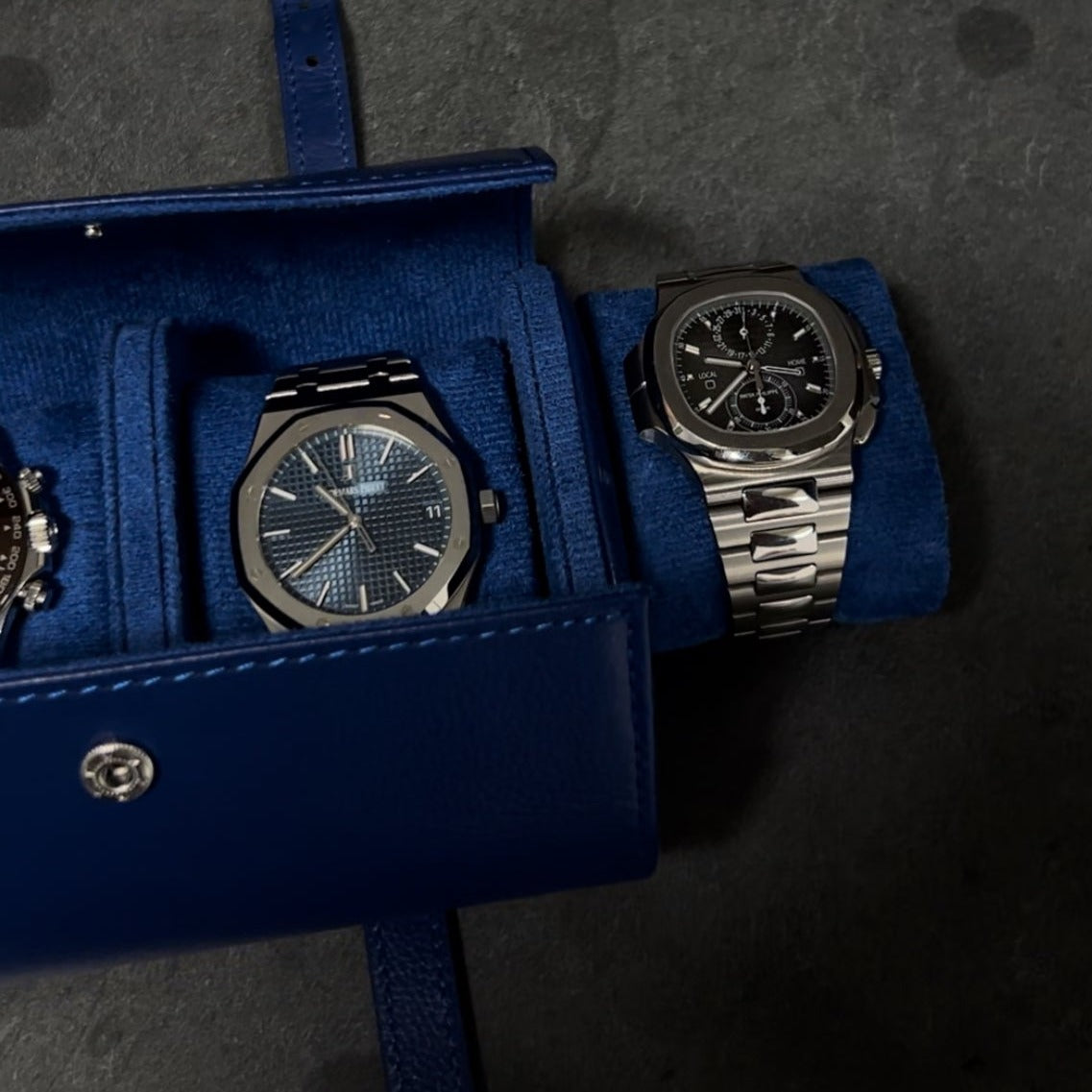 Diese Uhrenrolle ist handgefertigt aus feinem Echtleder mit Royal Blauer-Außenseite und bietet Platz für bis zu drei Uhren. Eine Uhrenrolle ist ideal, um Ihre Lieblingsuhren bei jeder Gelegenheit mitzunehmen, z. B. auf Reisen, oder einfach für die tägliche Aufbewahrung zu Hause. ⌚️